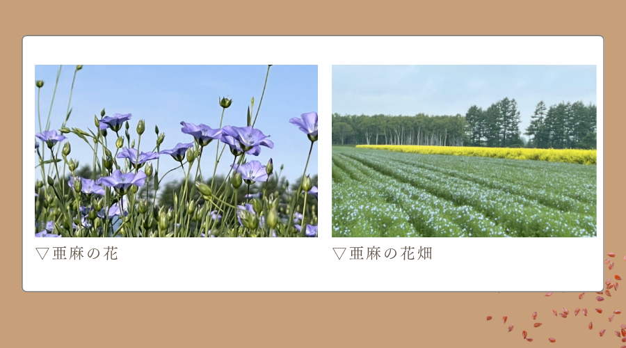 亜麻の花は朝日とともにその花弁をひらき、正午には散ってしまいます。そして薄いブルーのような紫に近いとても神秘的な色の花を咲かせます。その短い時間だけ現れる一面の儚い幻想的な景色に心奪われます。