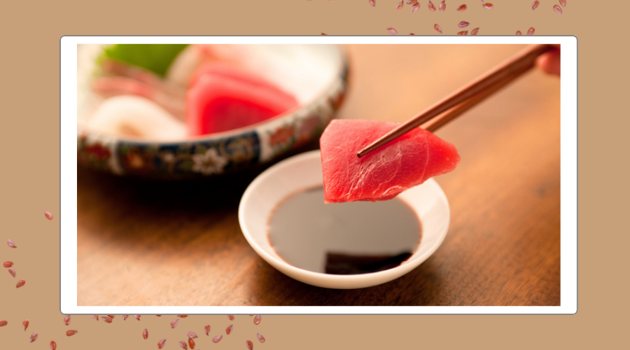 お刺身の醤油に亜麻仁オイルを一滴垂らすとお刺身にコクが足されます。マグロの赤みが中トロのように味わえます。
