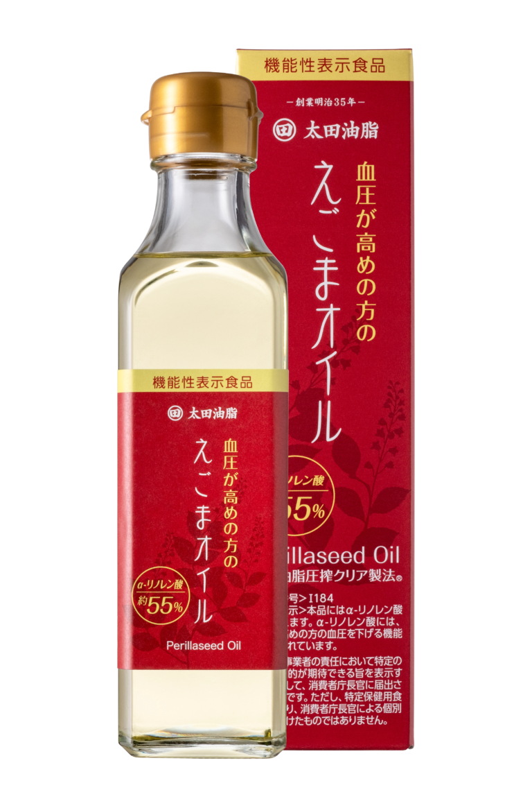 太田油脂の機能性表示食品「血圧が高めの方のえごまオイル」は、α‐リノレン酸が豊富なえごまを使用しています。